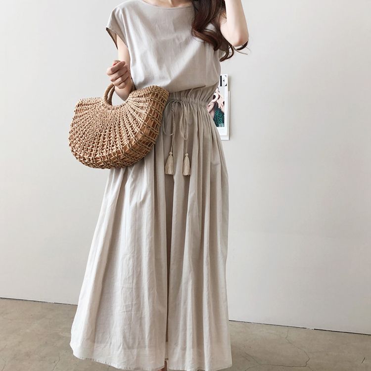 リネンワンピース 韓国ファッション綿麻ワンピースコットンリネン夏服レディース大きいサイズ韓国ファッション日本ファッションゆったり着痩せスリム無地