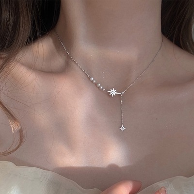 ビーズアクセサリー真珠の八芒星のネックレスの女性仙気の流れる蘇の星の鎖骨のネックレス LXL71