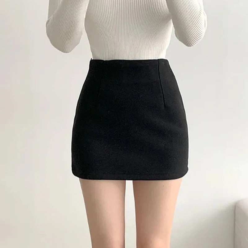 杏色のウールスカート ヒップラインを強調するスカート 女性用秋冬 2025年新作 小柄な方におすすめ 合わせやすい通勤用ウールワンピースミニスカート