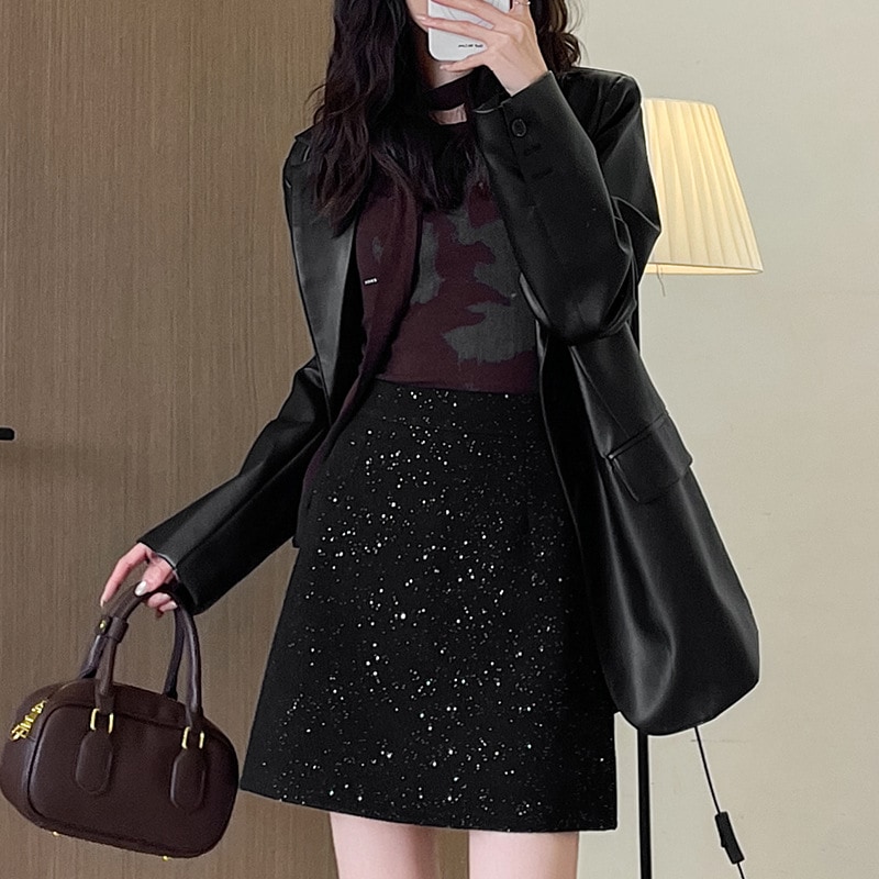 半身裙 毛織りAラインミニスカート 秋冬用女性用ミニスカート 韓国風新作 ハイウエスト フィット&フレア チェック柄ボディコンミニスカート
