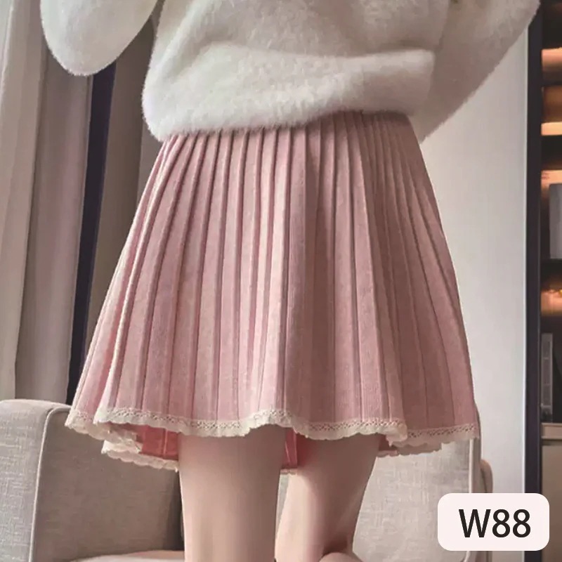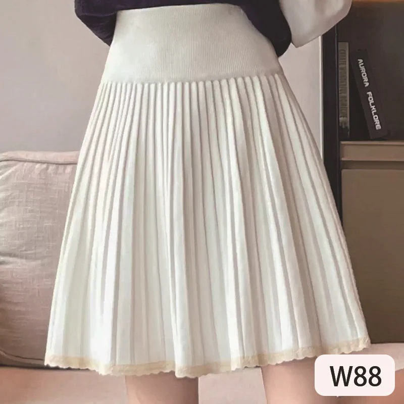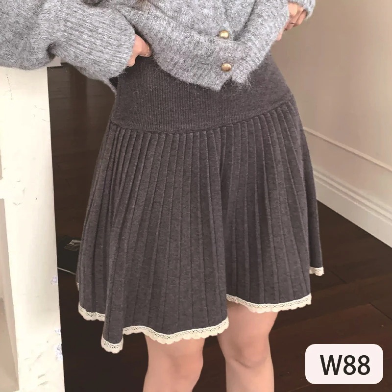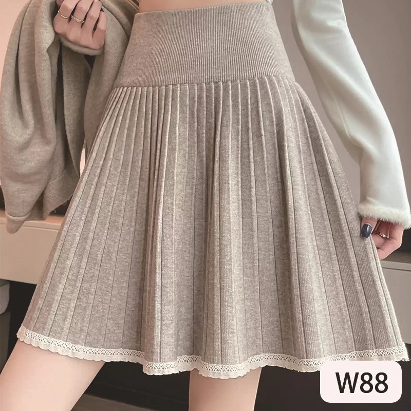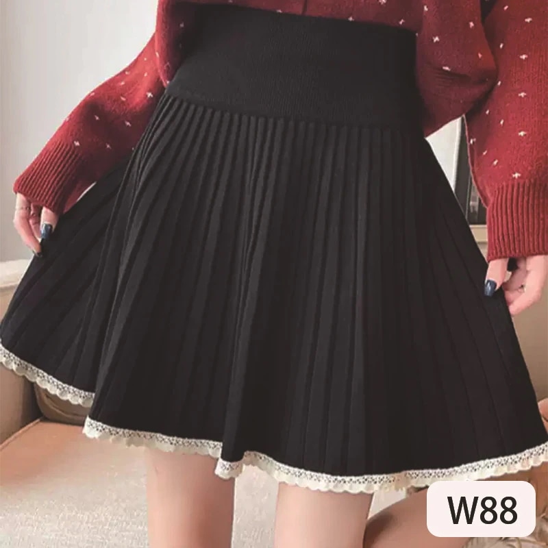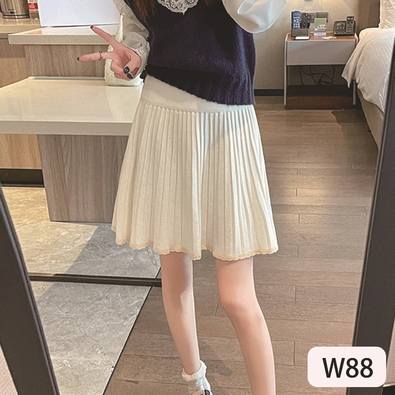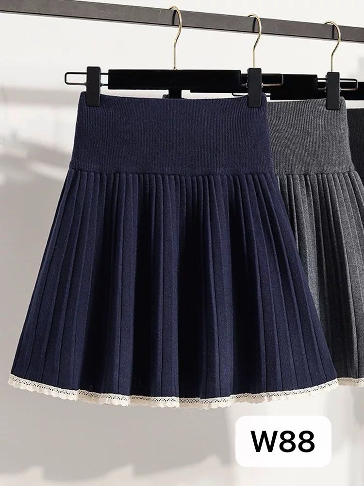レースニットプリーツスカート レディース秋冬 2025新作 低身長向け ハイウエスト 細身効果 カジュアルAラインミニスカート