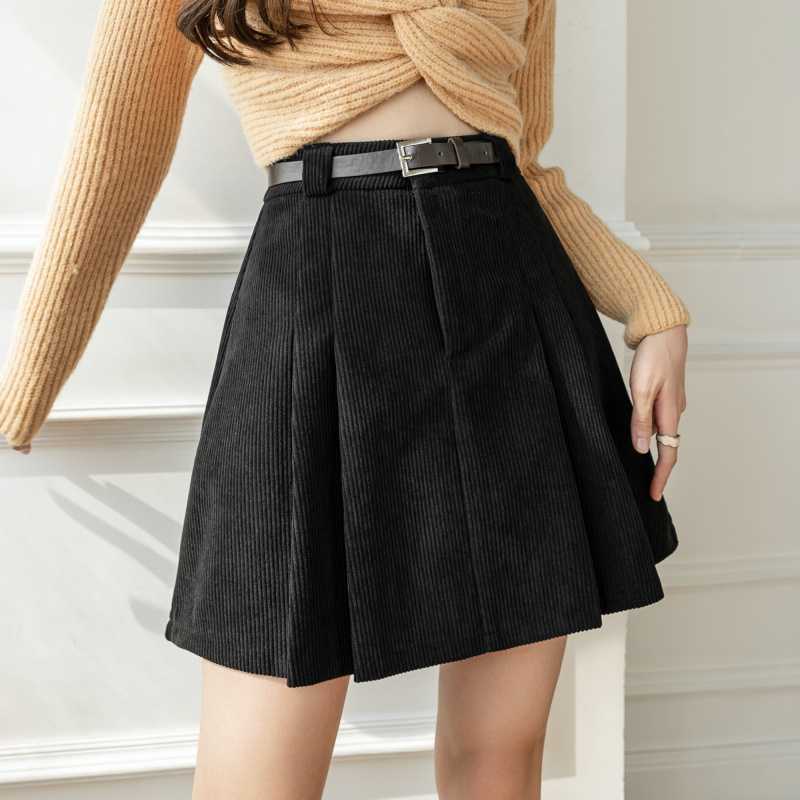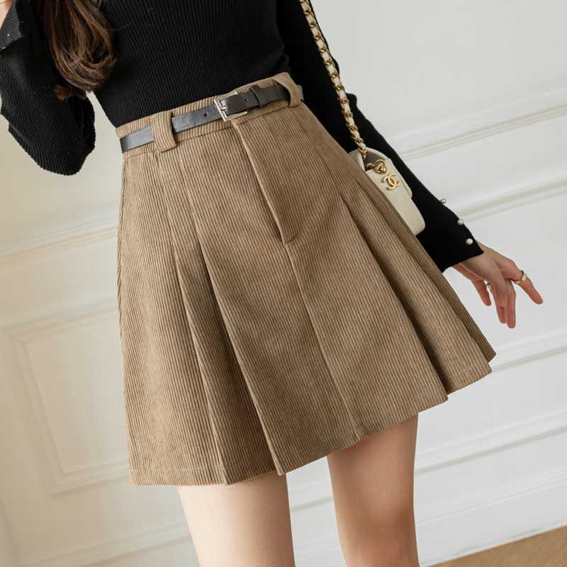 コーデュロイ大文字スカート女性用 秋冬2024新作ハイウエストプリーツミニスカート 細身効果ヒップライン強調ミニスカート