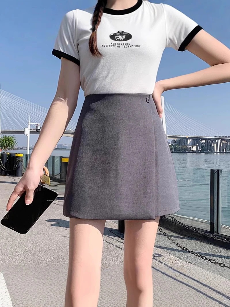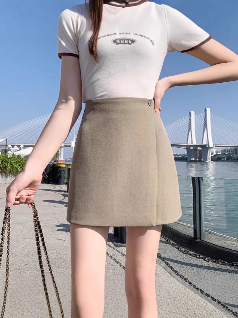 2025年春秋新作 韓国風ハイウエスト万能スリムシルエット アシンメトリーデザイン 透け防止スーツスカート ボディコンミニスカート