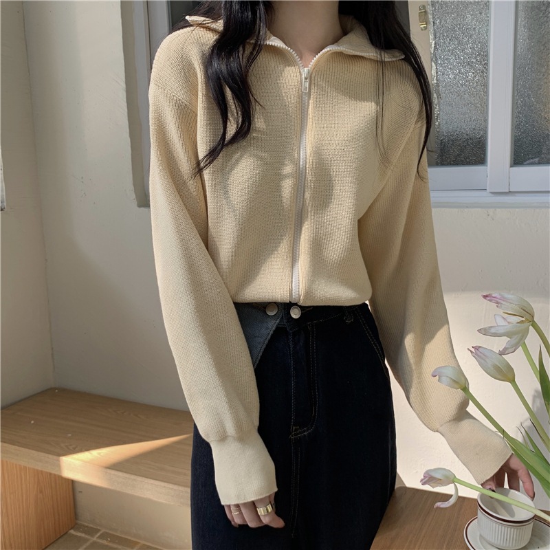 ラペル長袖ニットカーディガン女性秋冬新作韓国風ゆったりスリム万能ラフニットジャケットトップス
