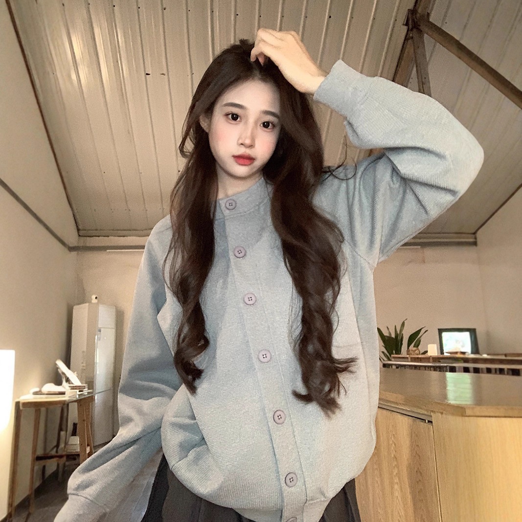グレー女性用スウェット秋薄手カーディガンアウター デザイン感あるラウンドネックトップス