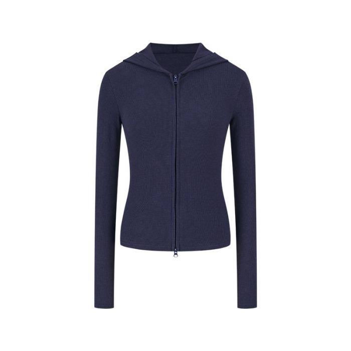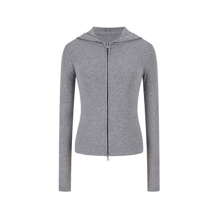 甘辛フード付きスウェットアウター女性秋新作スリム万能ダブルジップトップス