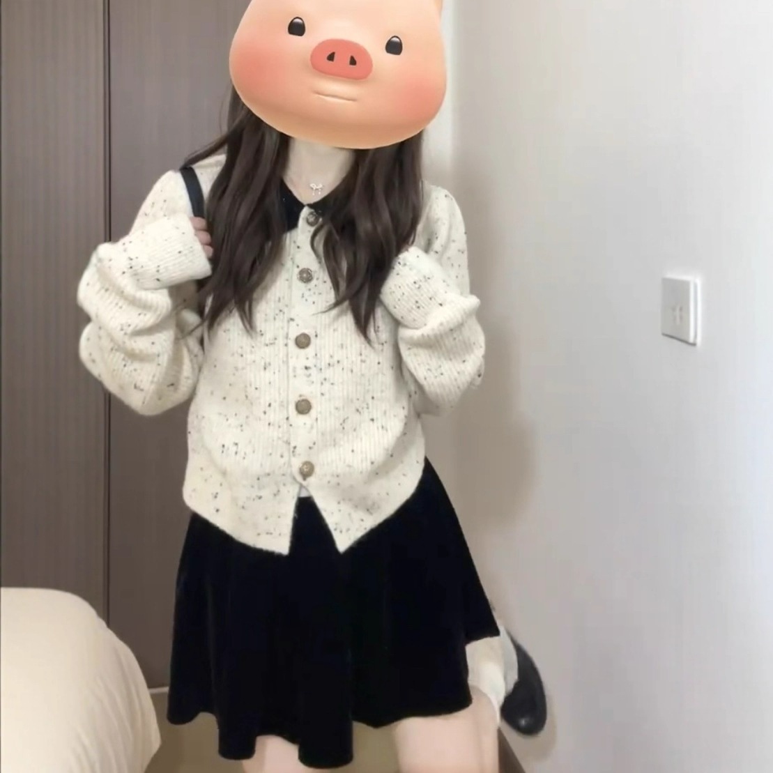 2026秋新作 ニットジャケット 女性用 斑点カラーブロックショートニットカーディガン ユニークなショートトップス