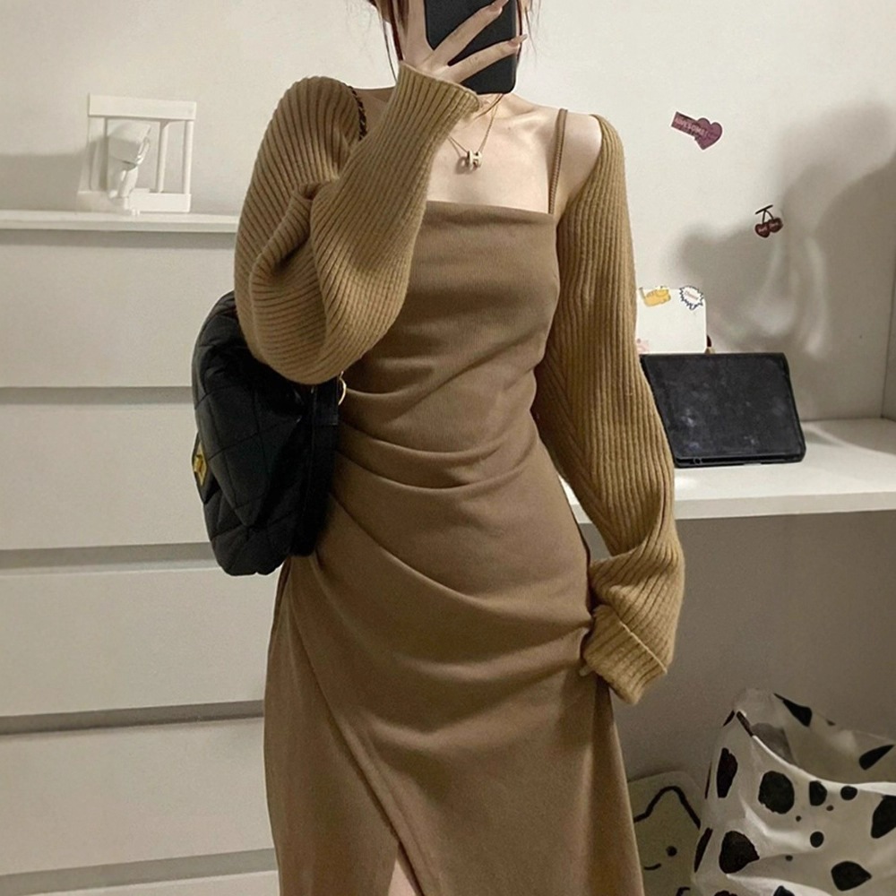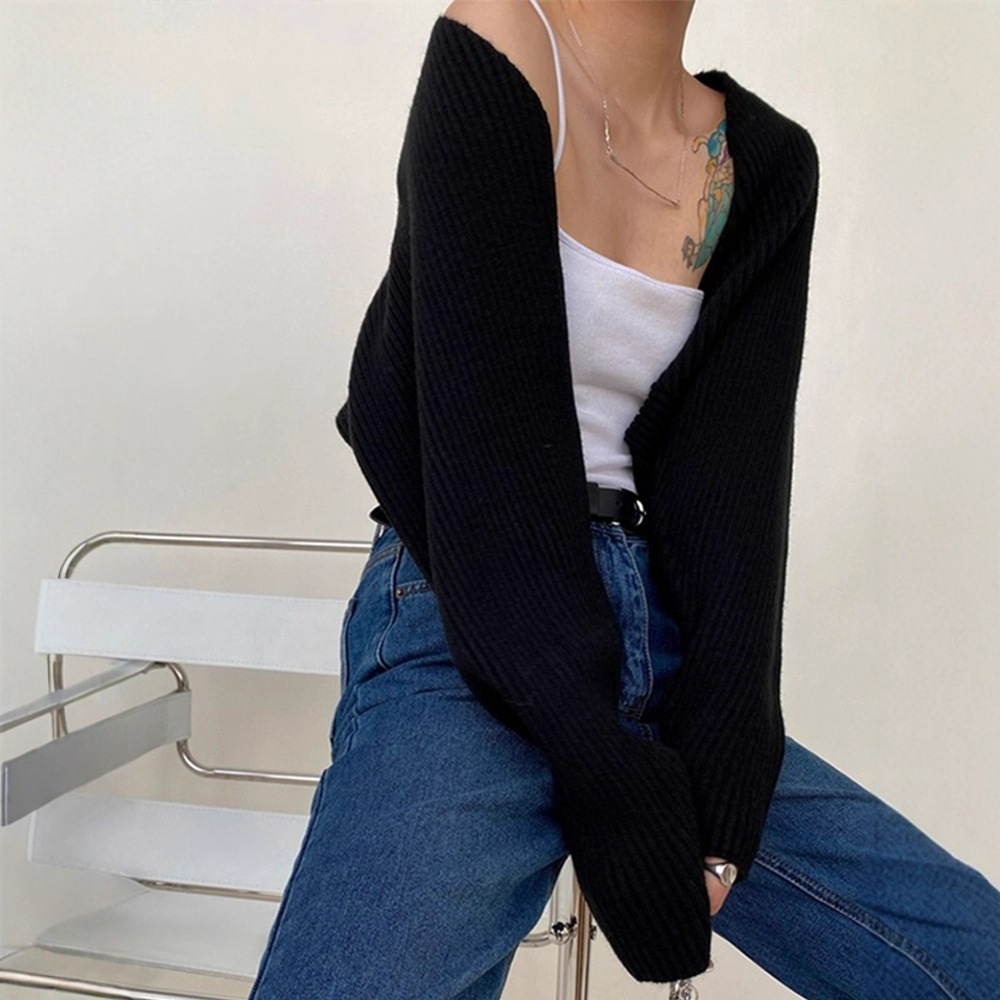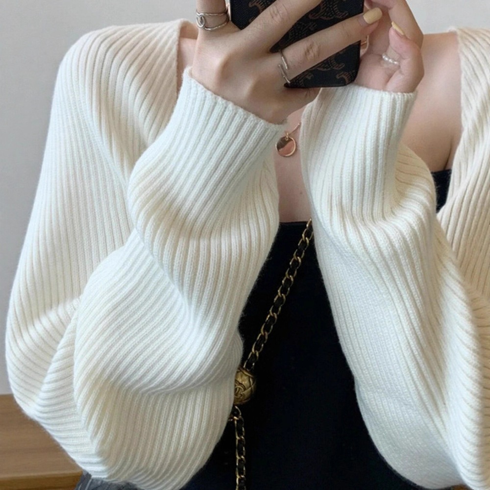 カジュアル万能気質ニットカーディガン女性秋用セーターショートストラップアウターショールカバーアップショートジャケットトップス