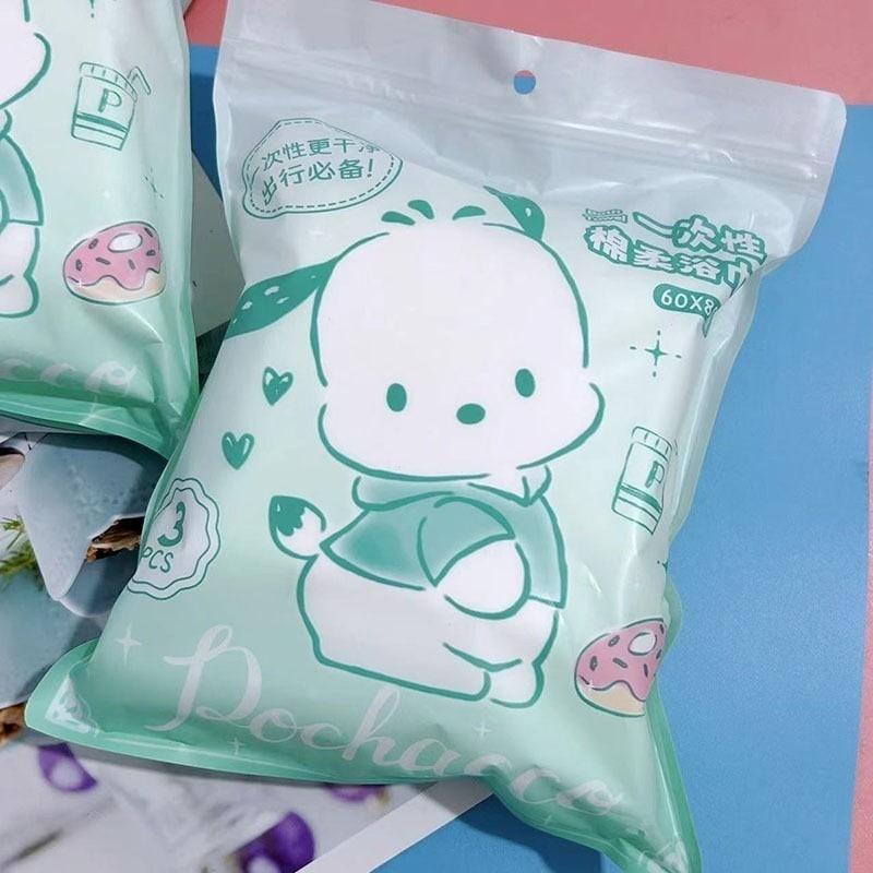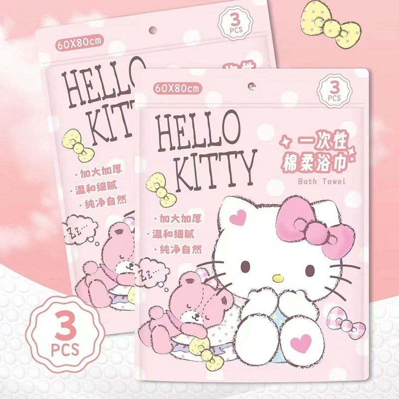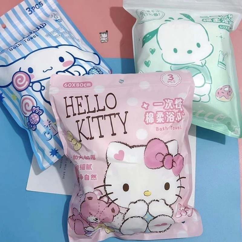 サンリオ KT猫&シナモロール&パチャドッグ 使い捨てバスタオル 3枚セット 旅行用 携帯便利 大人用 洗面タオル