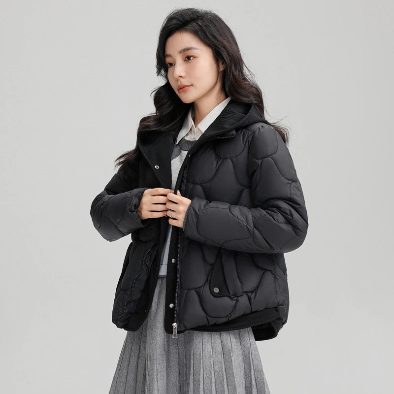 ショート丈ダウンコート・綿入れコート新作 2025年ゆったり韓国風ファッション万能冬用フード付き綿入れコート 厚手アウター ダウンジャケット