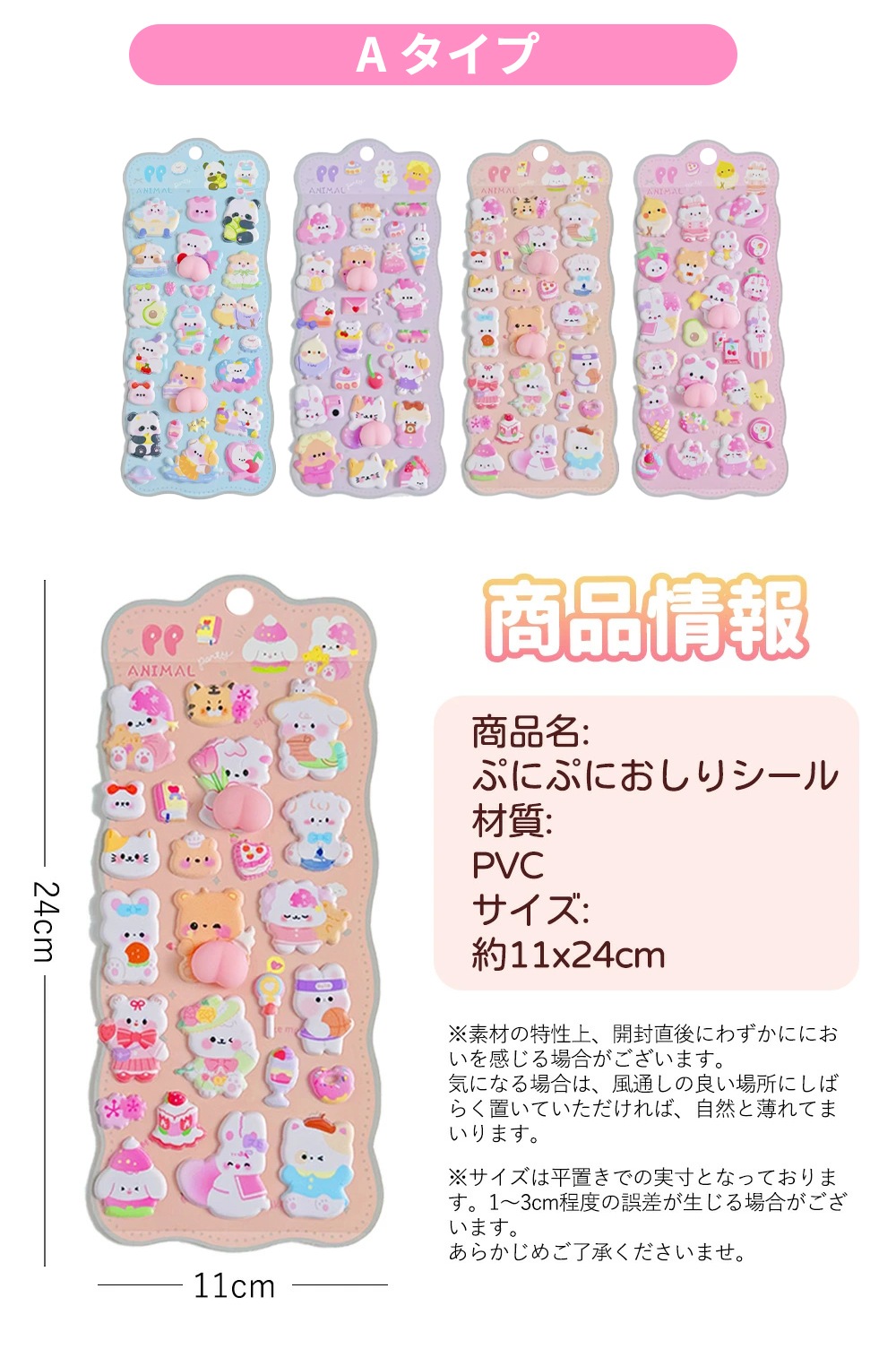 即納 【デコシールまとめ買い】 おしりシール 3Dシール 立体シール ぷっくりシール ご褒美シール 可愛い 動物 キャラクター 女の子 大人 子供 スマホケース シール帳 シール交換 お尻シール