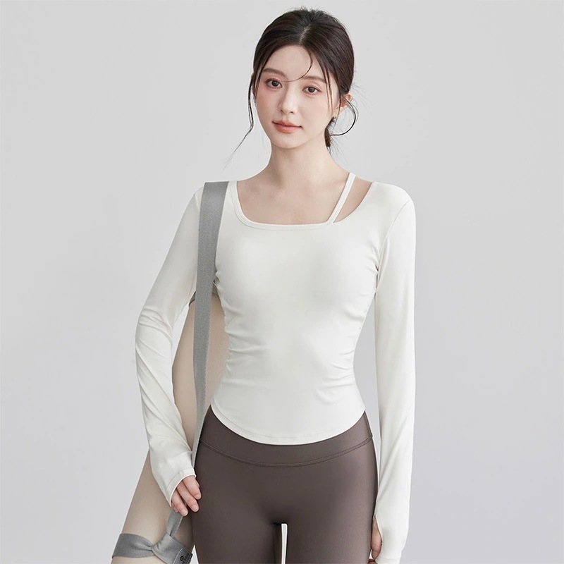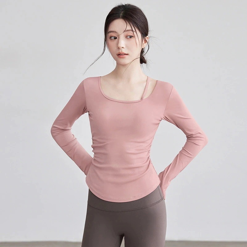 フィットネストップス 女性用 胸パッド付き ヨガウェア 長袖 スポーツ ランニング トレーニング ブラウス トレーニングウェア