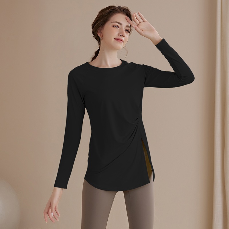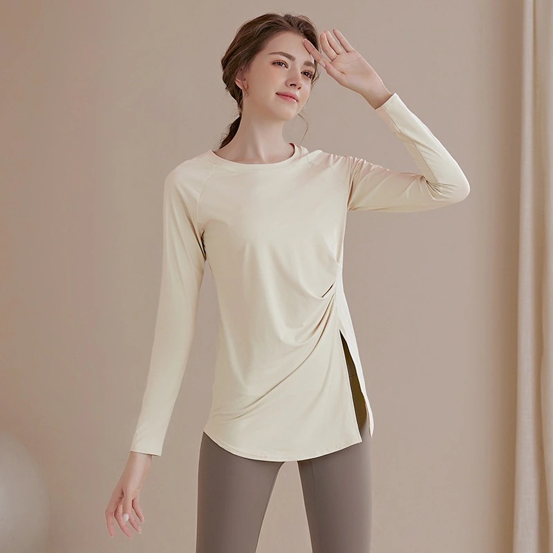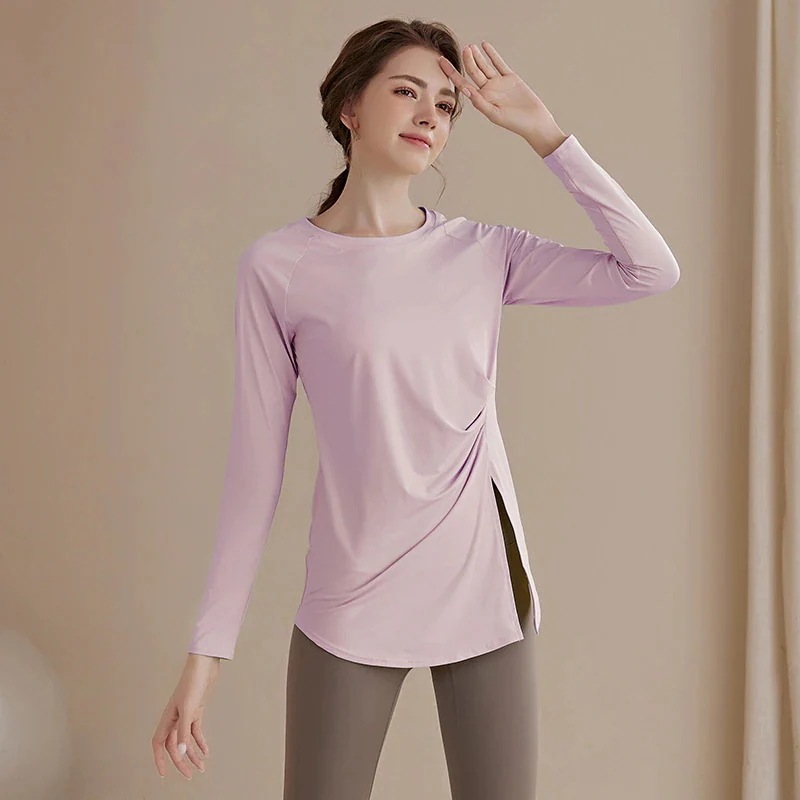 長袖ヨガウェアトップスフィットネスウェアゆったりスポーツトップス