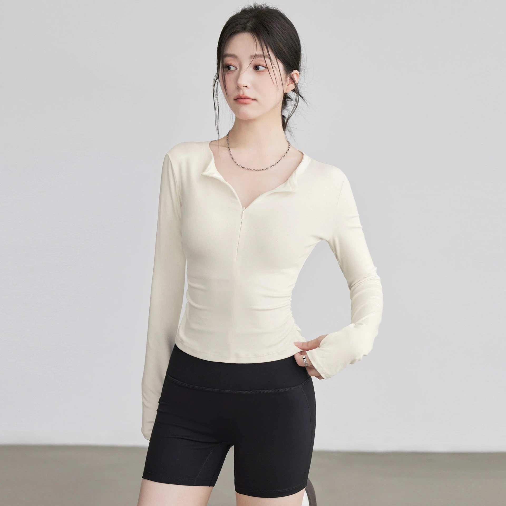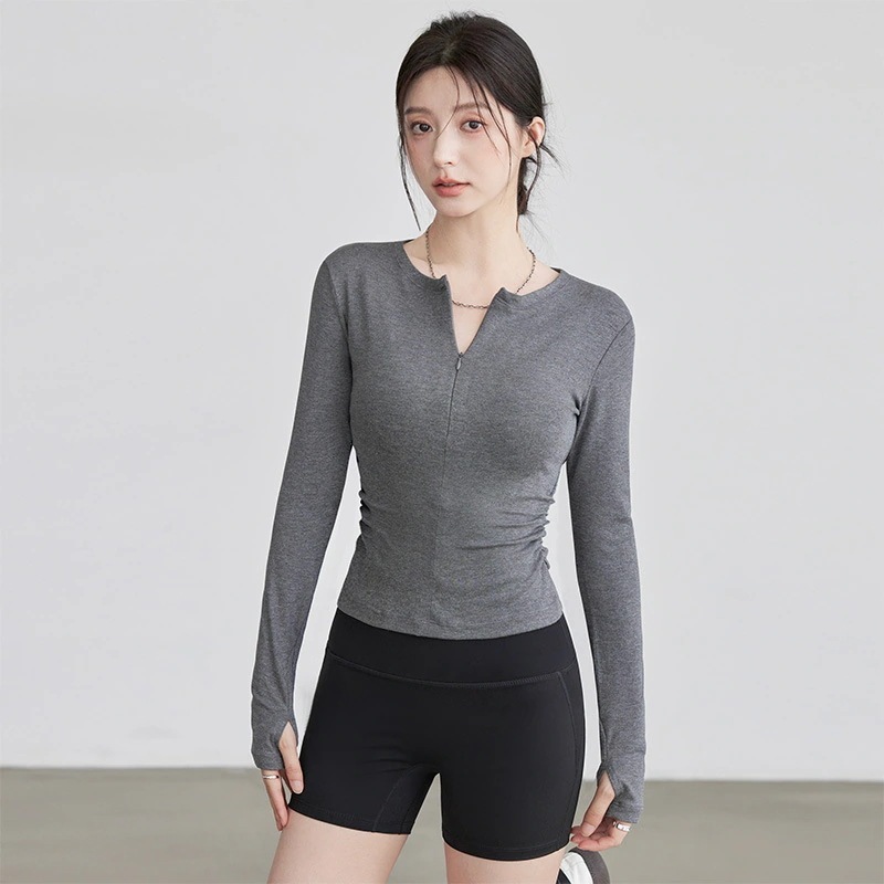 ヨガウェア女性用ランニングフィットネス長袖タイトジッパースポーツトップス
