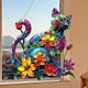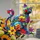 壁掛け ステンドグラス サンキャッチャー 猫 キャット 猫と花 カラフル フラワー 2Dアート 屋外 屋内 庭 綺麗 可愛いty355