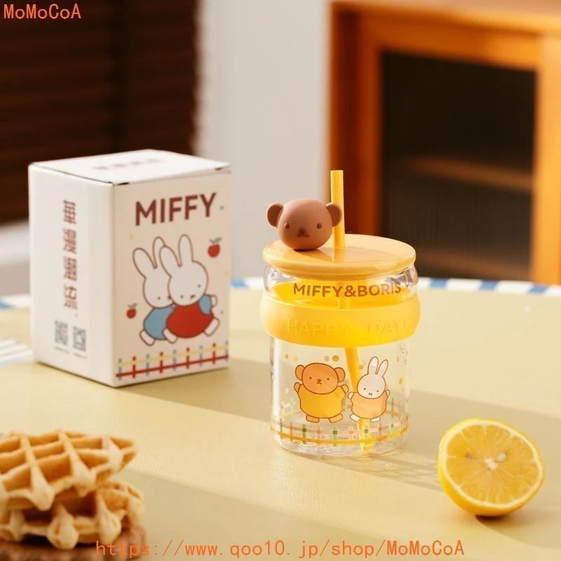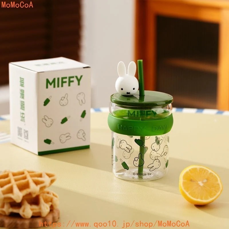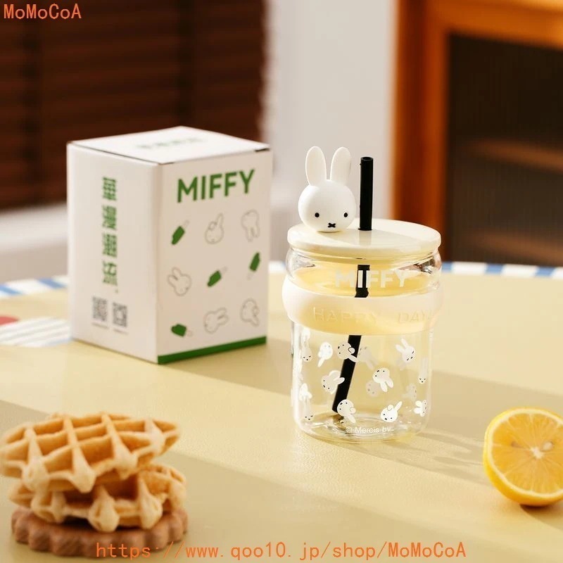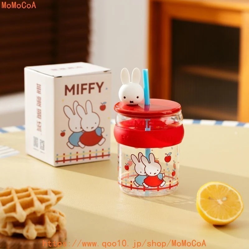 ミッフィー グラス コップ 耐熱 450ML ストロー付き 風 人気 コップ 水筒 おしゃれ 韓国 雑貨 インテリア グラスコップ 食器 透明コップ ガラスコップ 耐熱グラス