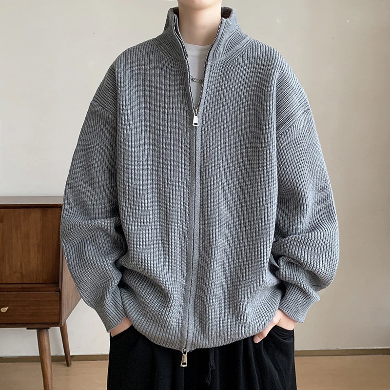 秋冬新作カーディガンセーターニット男女兼用 無地ジップアップジャケット人気トレンドニットセーター・セーター