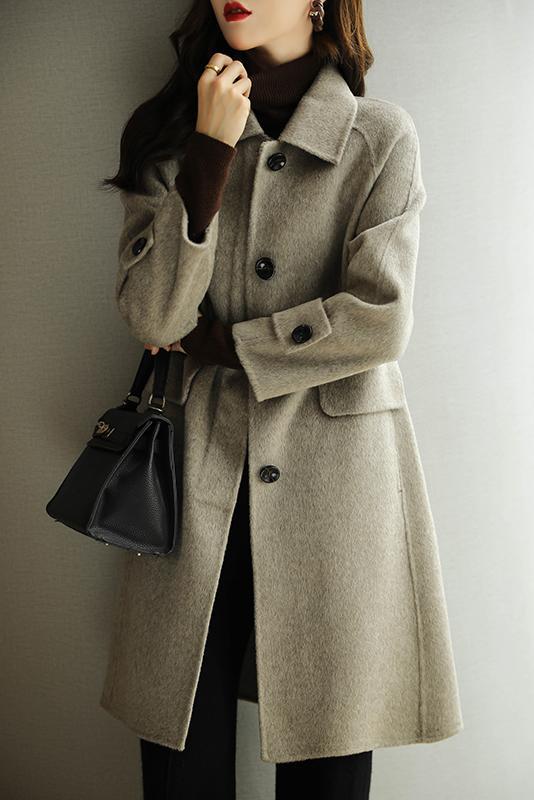 LA PELLE新作 ヘリンボーン ストレートシルエット 高級感 コート 気品 カジュアル ミドル丈 ラペル ツイードジャケット