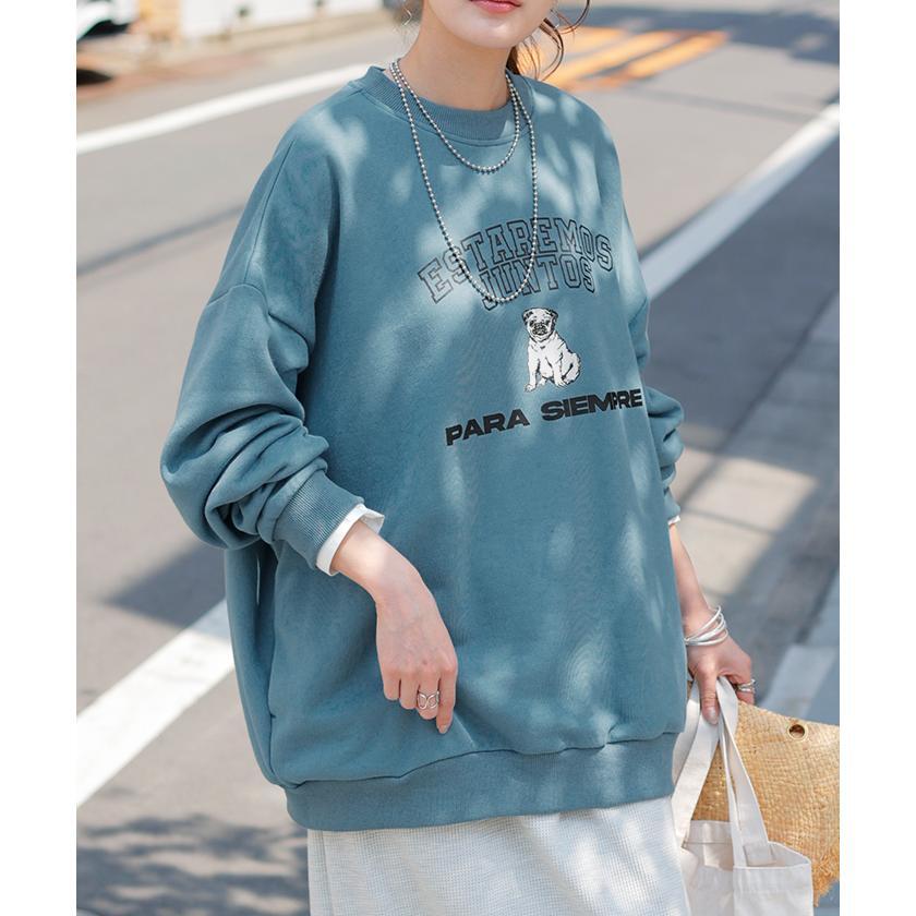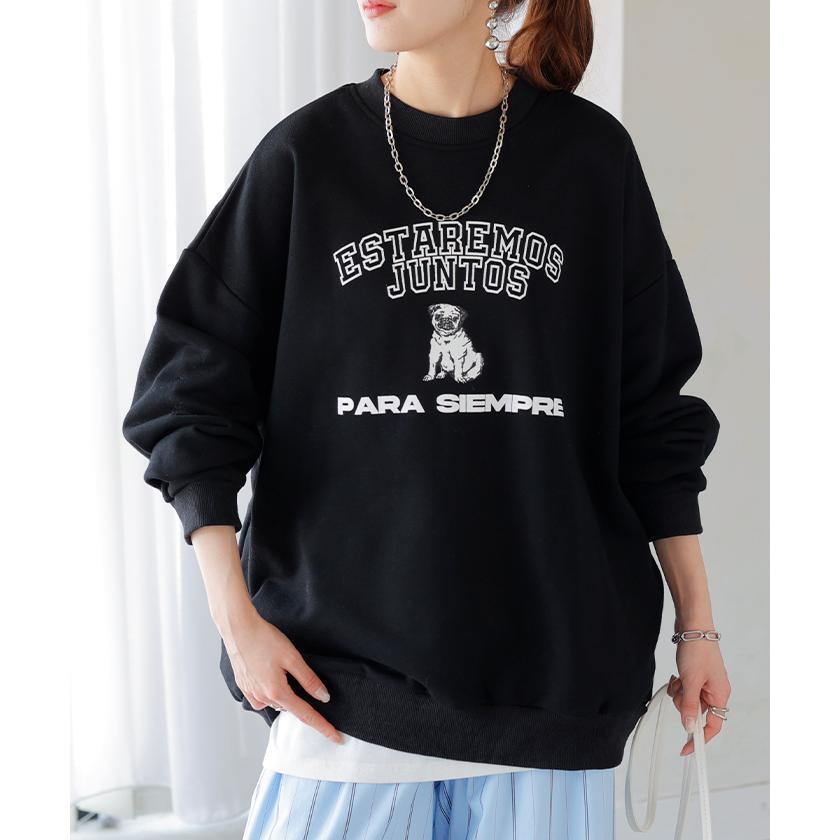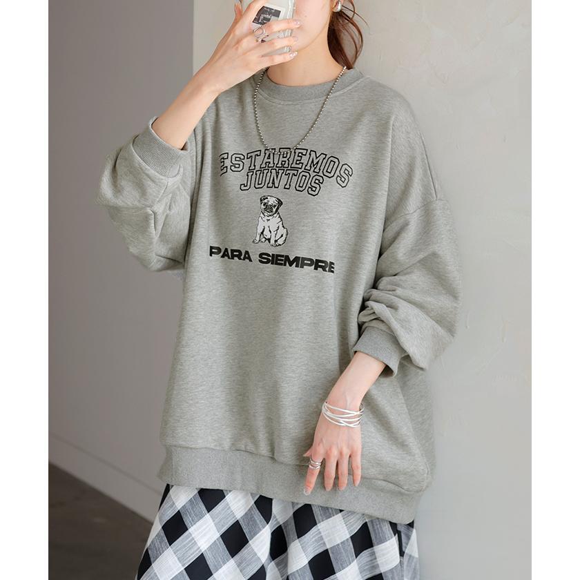 スウェット comfortable ロゴ チュニック レディース トップス ロング トレーナー オーバー gifts for women プルオーバー 無地 犬 パグ
