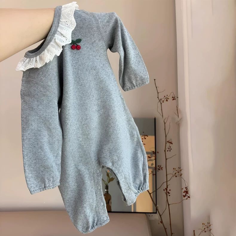 ベビー秋用ロンパース カジュアルな乳幼児用 可愛いレース襟 外出用ハイハイ服 赤ちゃん服 秋