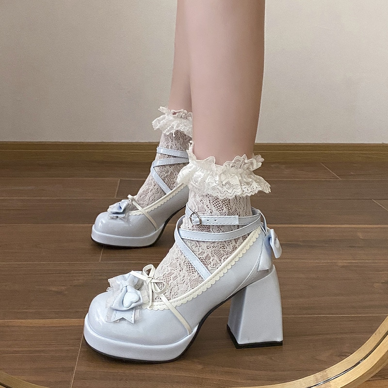 ハイヒール 新作厚底キュートロリータJKパンプス リボンハイヒールメアリージェーンシューズ