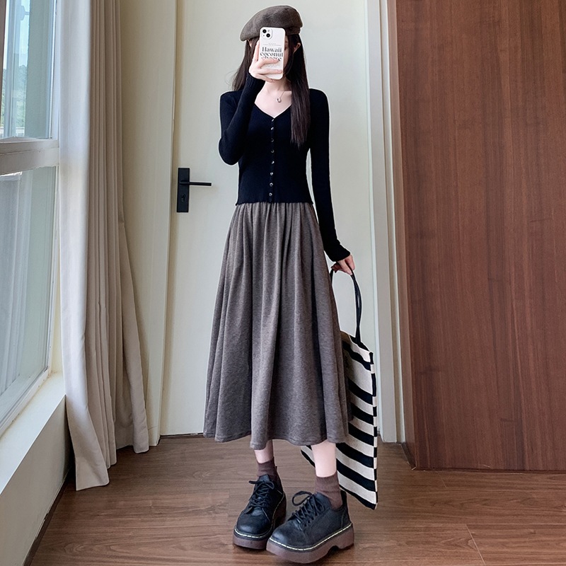 2026 秋 ロングスカート ニットスカート 無地 ゆったり おしゃれ 体型カバー 通勤 レディースファッション ロングスカート