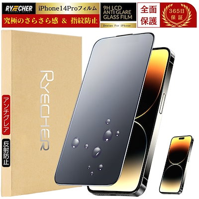 RYECHER指紋防止 iPhone14Pro フィルム アンチグレア マット ガラスフィルム 全面保護 保護フィルム さらさら 液晶保護フィルム