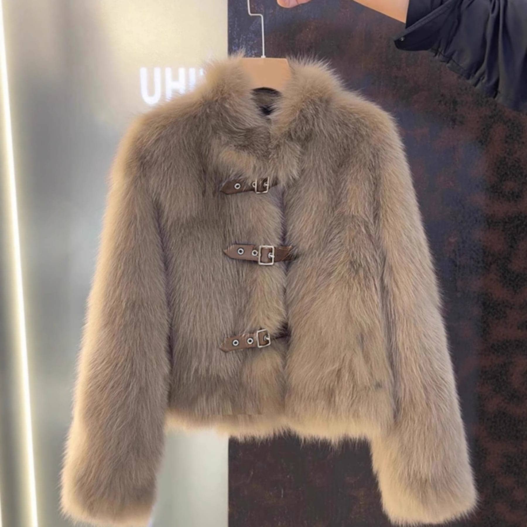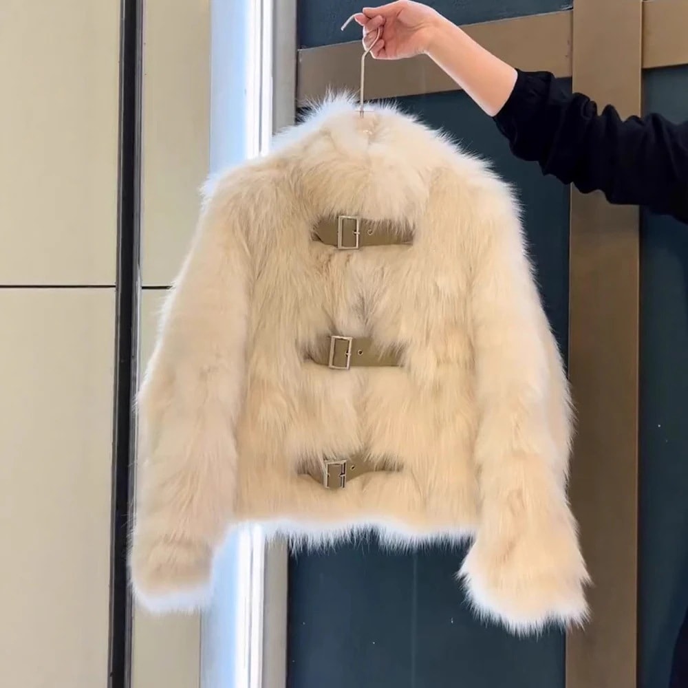 キツネ毛風 毛皮一体コート 女性用 冬季新作 ファー付きトップス