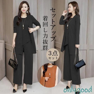 【2025秋冬先行】セットアップ パンツ レディース 夏 春 アウター ガウチョパンツ 着痩せ お呼ばれ 通勤 シャツ ブラウス 長袖 ロングパンツ