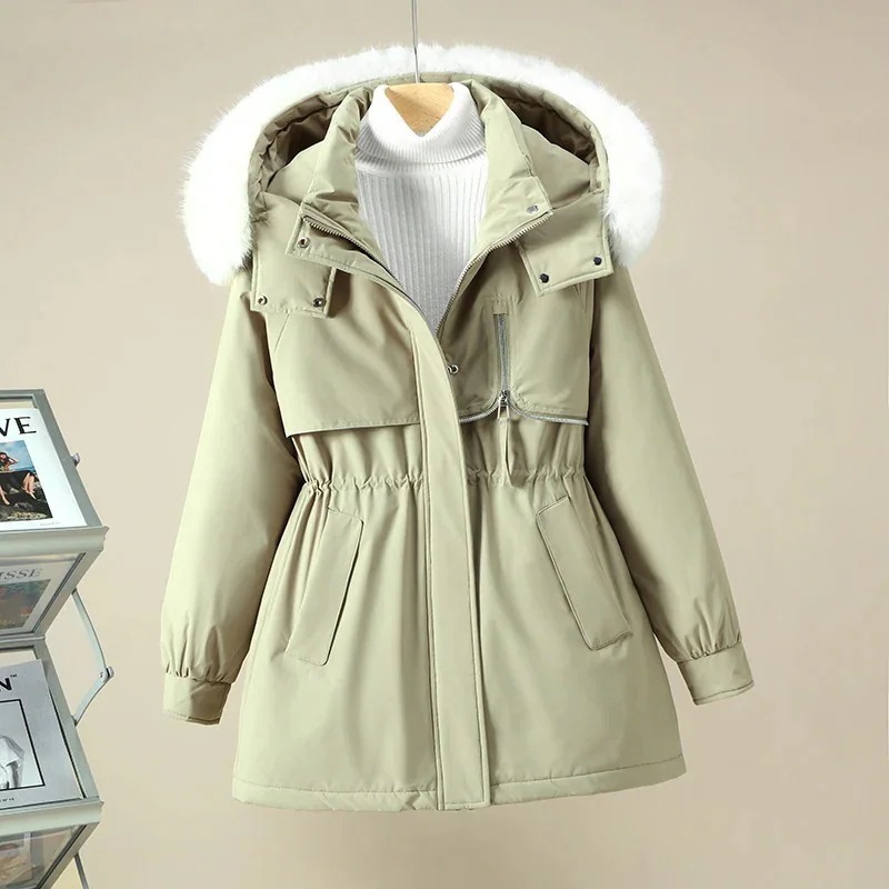 25発売 軽量 暖かい 厚手 ファーカラー フード付き 中綿コート ウエストAWアウター レディース AWアウター 大きいサイズ 裏起毛パンツジャケット ダウン混綿ジャケット 福138 ミラノ