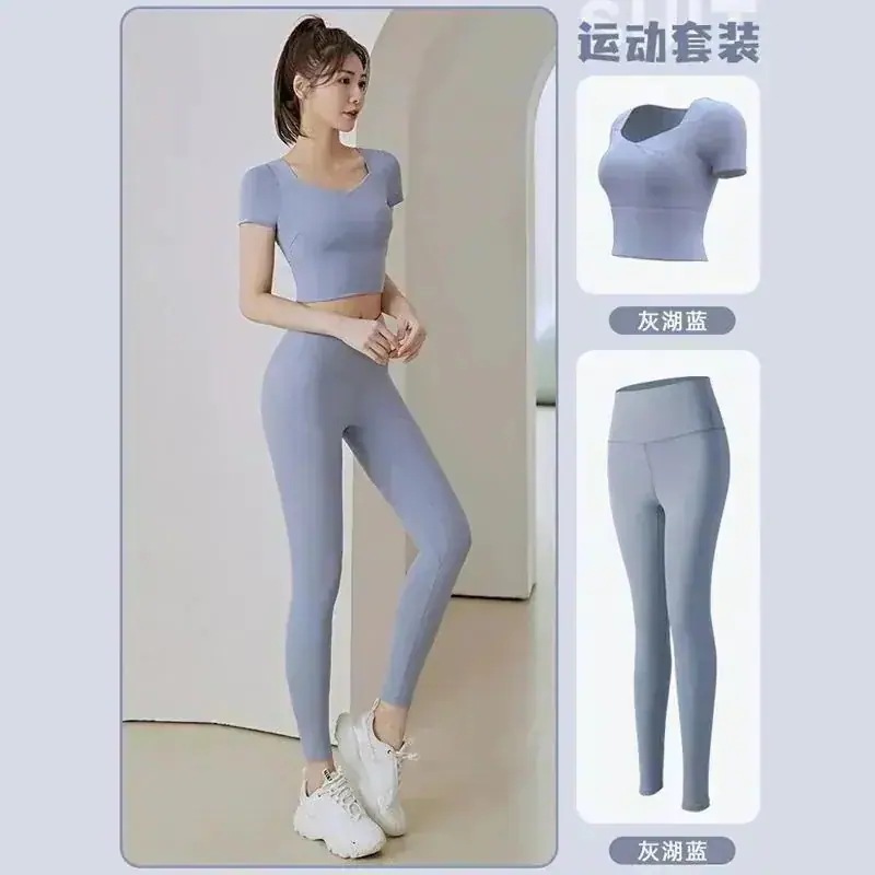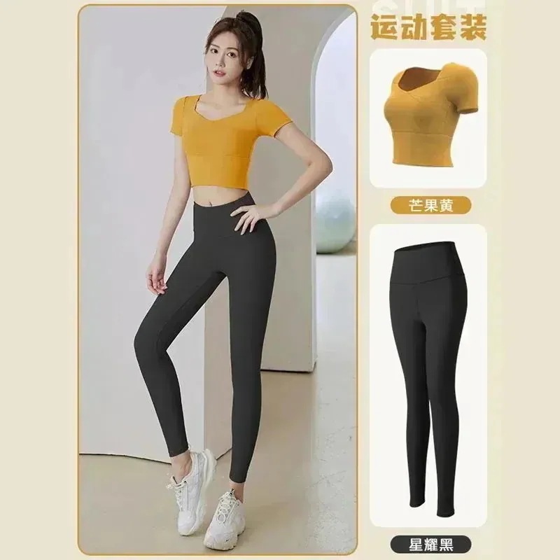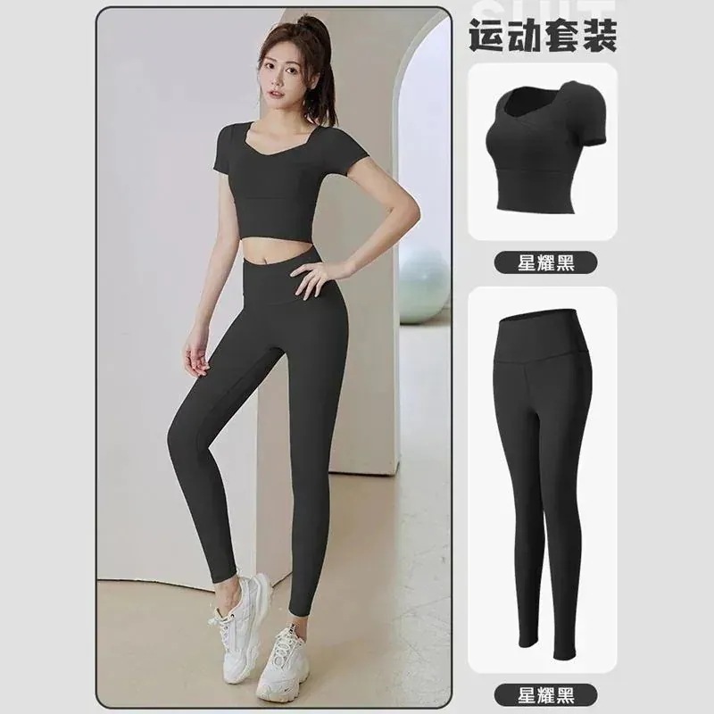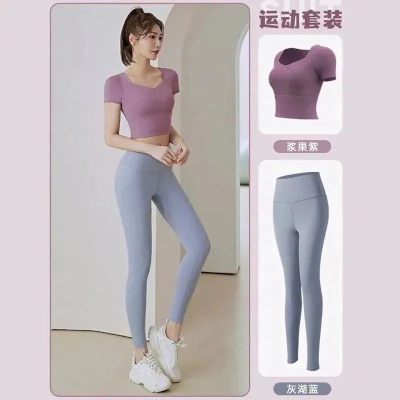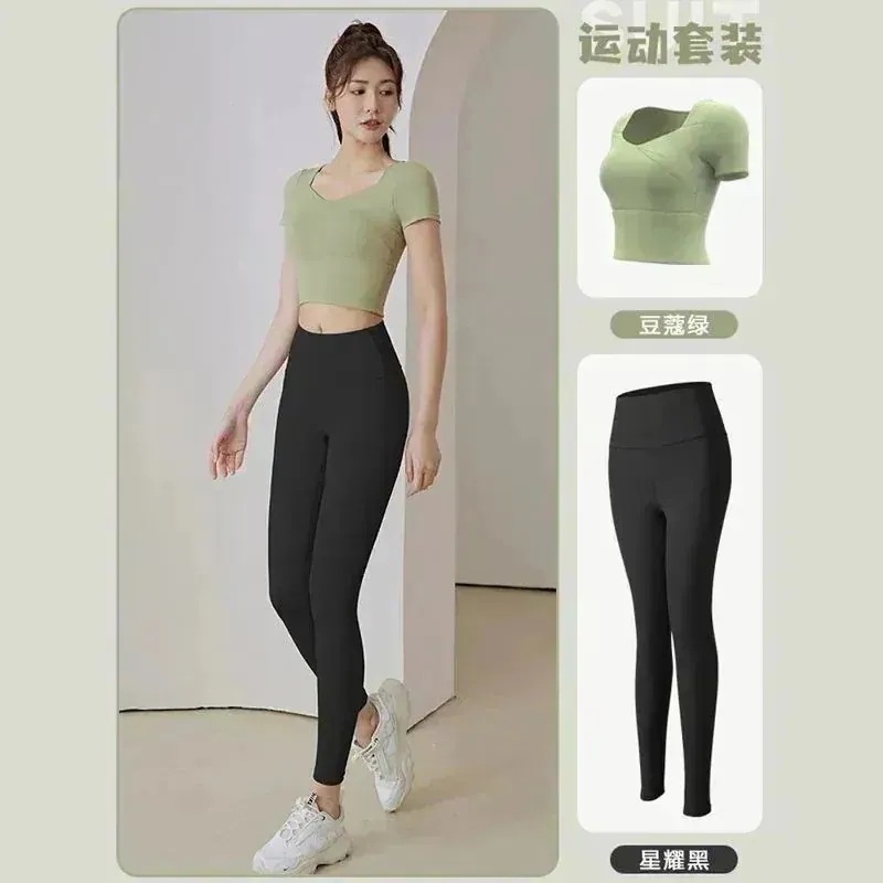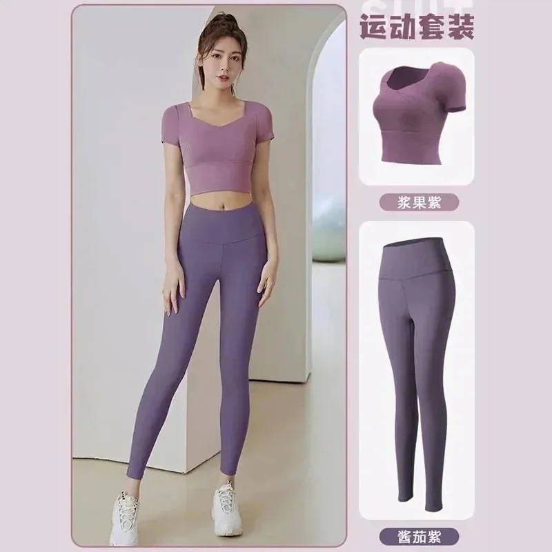3日で出荷 24新作 ピラティス トレーニング モーニングランニング チェストパッド付きスポーツ半袖トップス フィットネスセット お家ヨガウェア おしゃれヨガウェア ヨガウェア ヨガウェ
