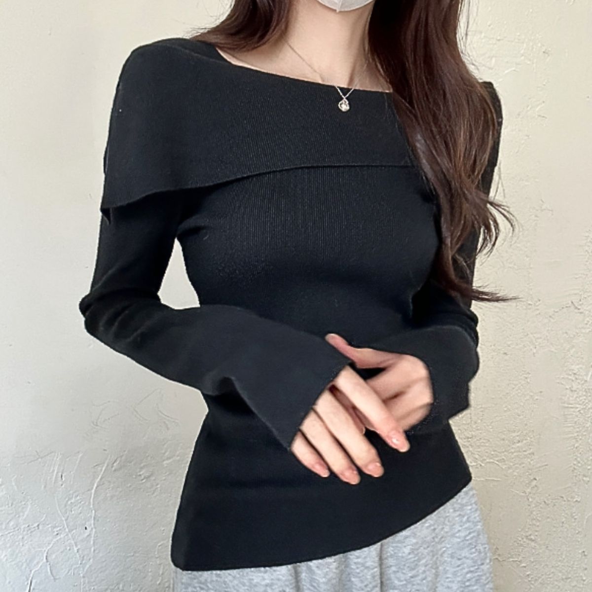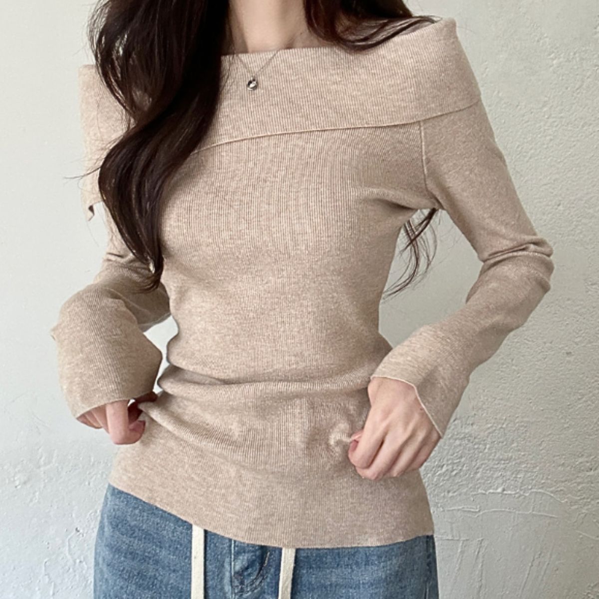 即納ありニット 長袖 ボートネック オフショル レディース プルオーバー トップス リブニット 無地 セーター 上品 タイト 肩開き 肩見せ シンプル 大人