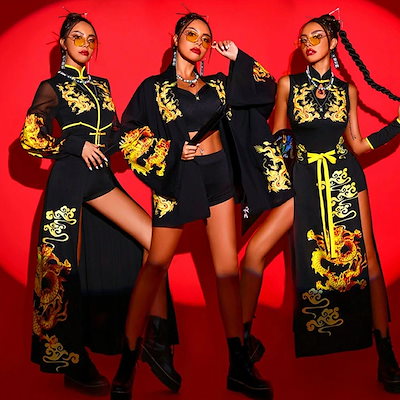 【早秋冬新作超.激.安】レディース ダンス衣装 ジャズ チャイナー ダンス衣装 セットアップ 大人 龍柄 ステージ 衣装 レディース ポール ダンス 衣装 演出服 上下 大人ダンス 衣装 DS jaz