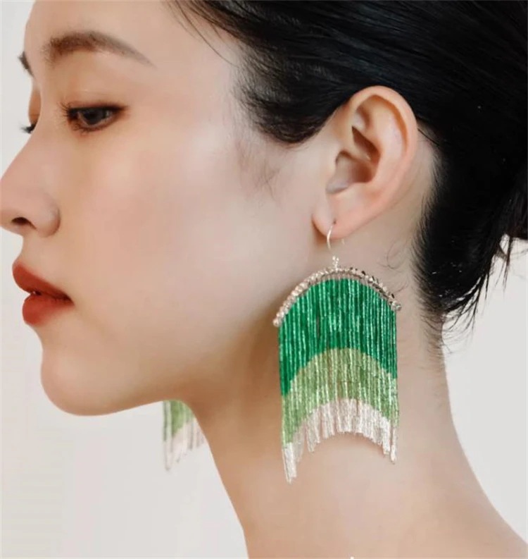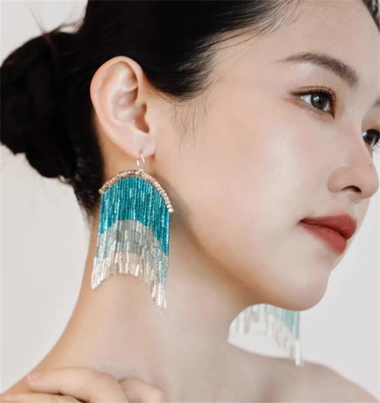 INSスタイル 2026年サマーの新作 8cmフリンジイヤリングが個性を表現 オリジナルブルーデザインで気品をプラス プレゼントにおすすめ 2色選択可能で あなたの夏を彩ります