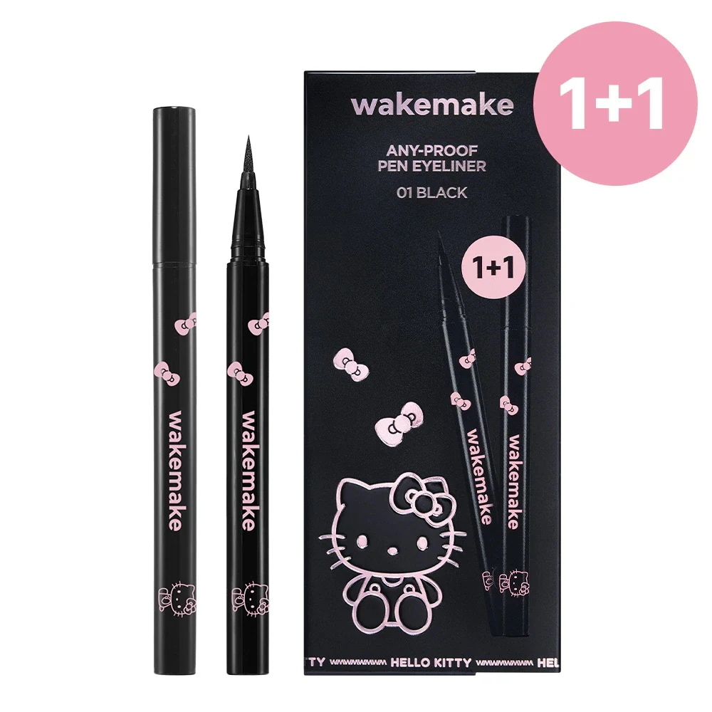 ウェイクメイク【HELLO KITTY BLACK EDITION】 スパチュラワイドファンデーションブラシ/ウォーターグロウ コーティングバーム/ナチュラルハードブロウペンシル