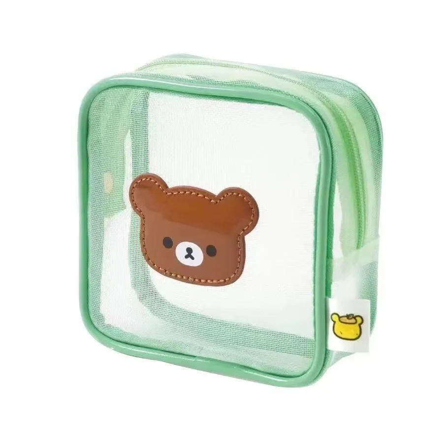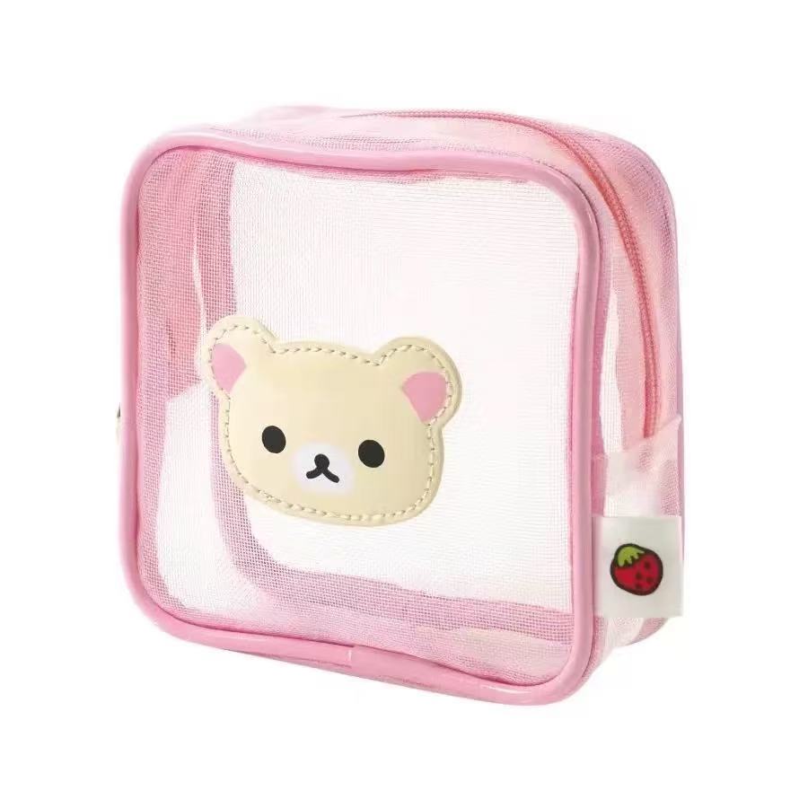 Rilakkuma 漫画かわいいメッシュスクエア小さな透明収納雑貨化粧品バッグアウトドアトイレタリーバッグ ポーチ新製品-937