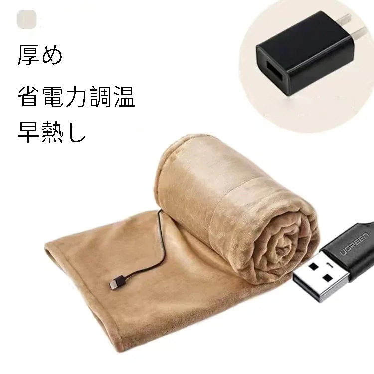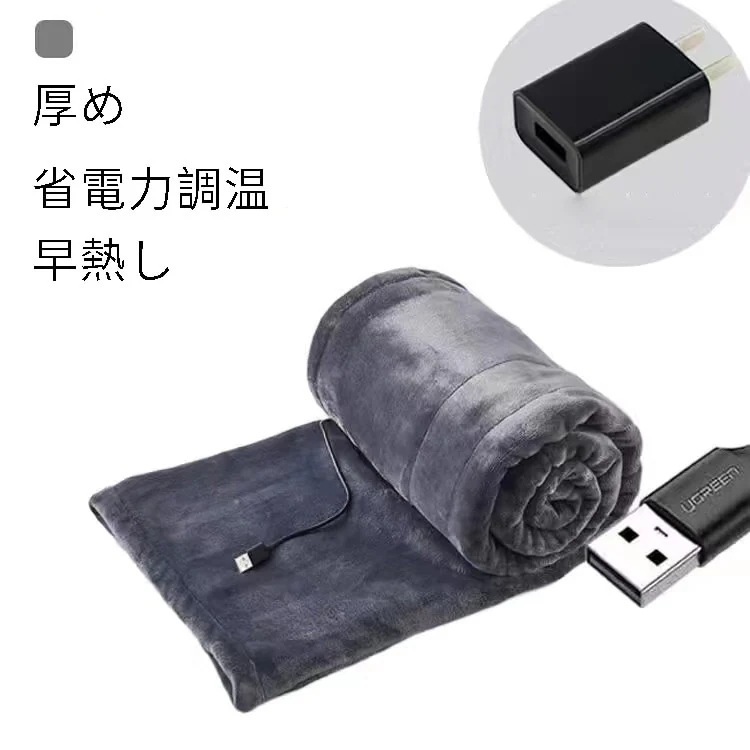 電気毛布 ホットブランケット 大判 3段階温度調節 USB給電タイプ 抗菌 防臭 静電気防止 選べる4色904129