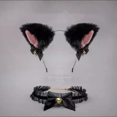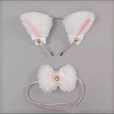 猫の耳飾り猫耳カチューシャのリボンヘアピンカチューシャ+首輪セット ロリータアクセサリー