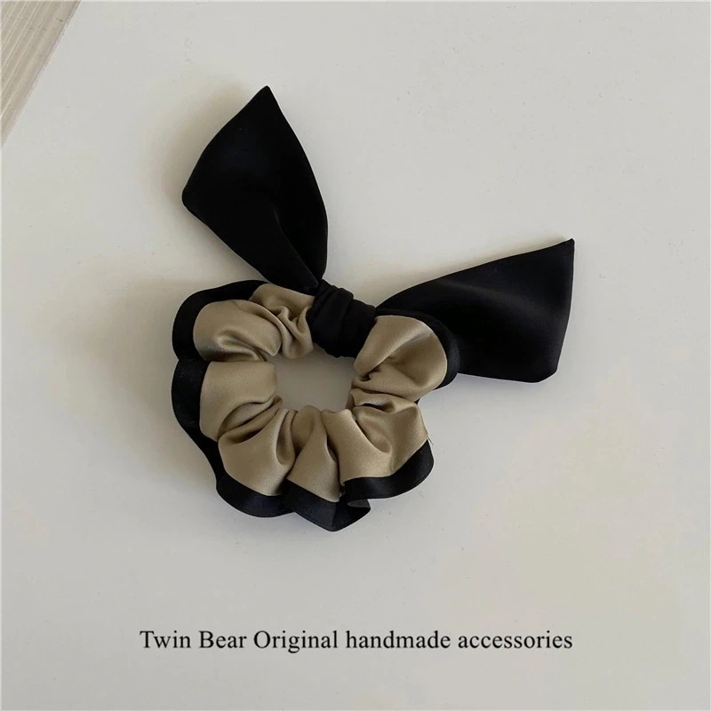 ヘアアクセサリー 定番のサテンサテンシンプル風insパッチワークカラーウサギ耳シュシュゴム大腸輪 夏のヘアアクセサリー 韓国ファッション