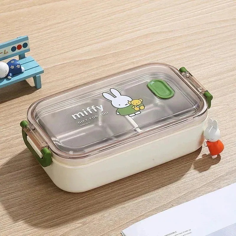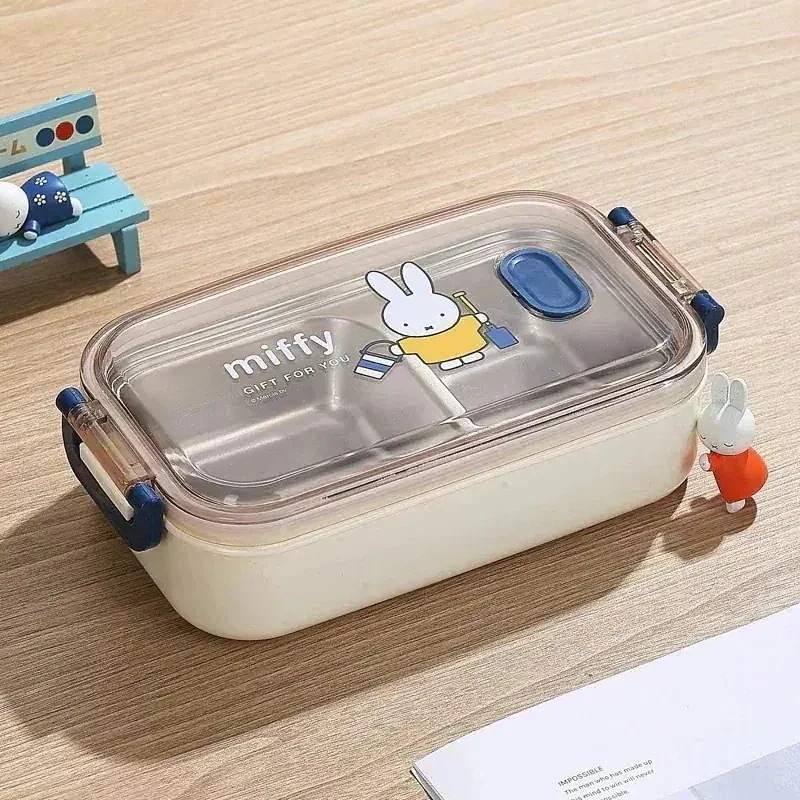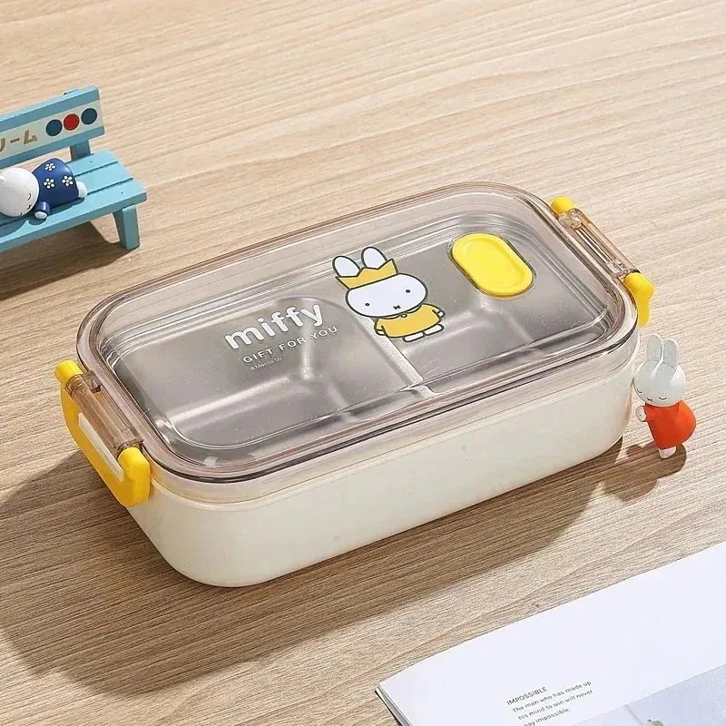 ミッフィー単段弁当箱サラリーマン学生用弁当箱付きランチボックスカートゥーン分格携帯弁当箱