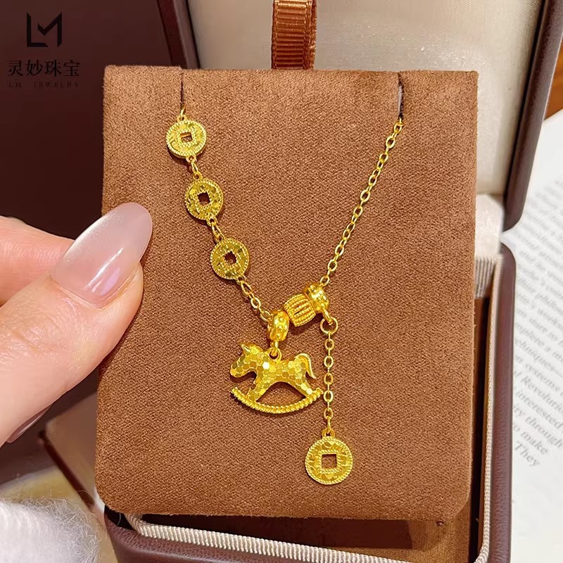 ポニー2026 馬 ネックレス クラッシュドアイス ポニー コイン ペンダント 马上有钱 ネックレス レディース ライトラグジュアリー ニッチ セーター 秋冬 オートクチュール ネックレス