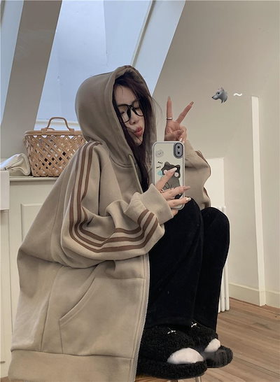 選べる2タイプ 薄手 厚手 裹起毛 パーカー フード付き羽織りスタイルアップ女っぽ きれいめ 大人っぽ 上品 サイズゆったりカジュアルトラックストリートシルエットスリーブ通学 学生ファッション