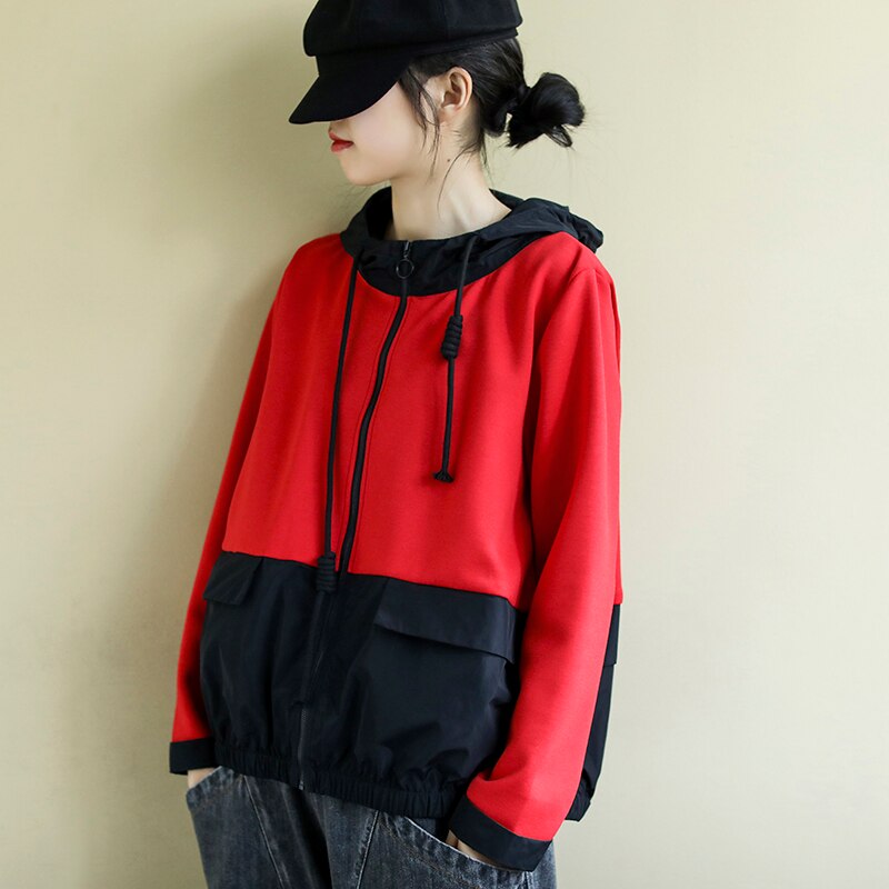 人気商品パーカーアウター今も人気コントラストカラー切り替えフード付きスウエットTシャツ大きいサイズ カジュアル ファスナー ジャケット 母の日