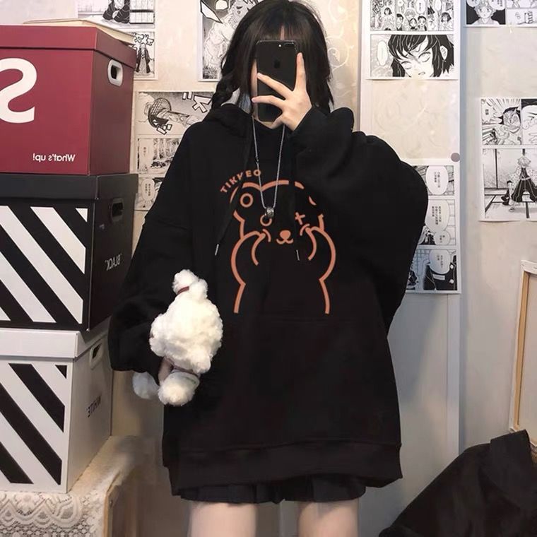 パーカーフード付きパーカーゆったりベアーギャザー特大ジャケット