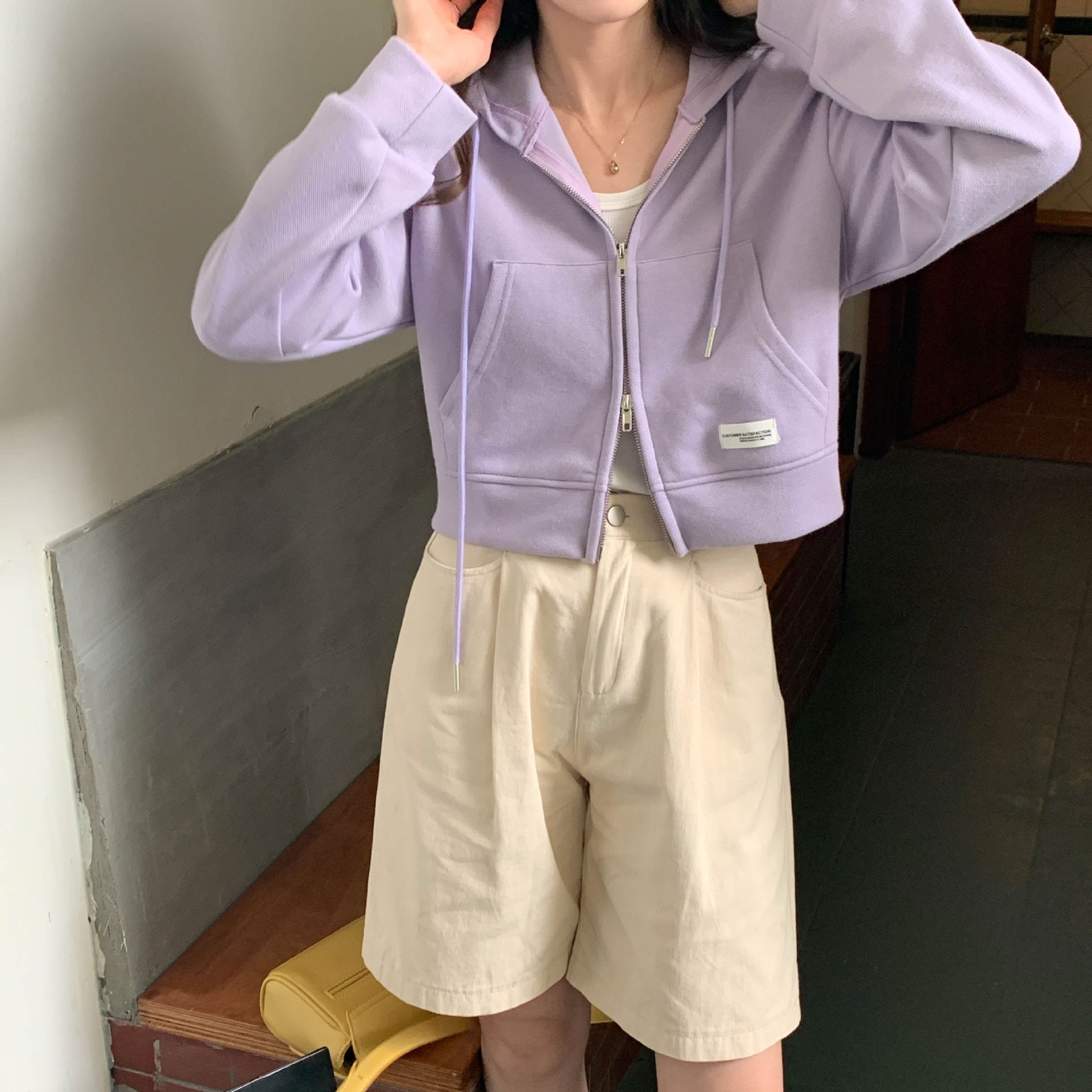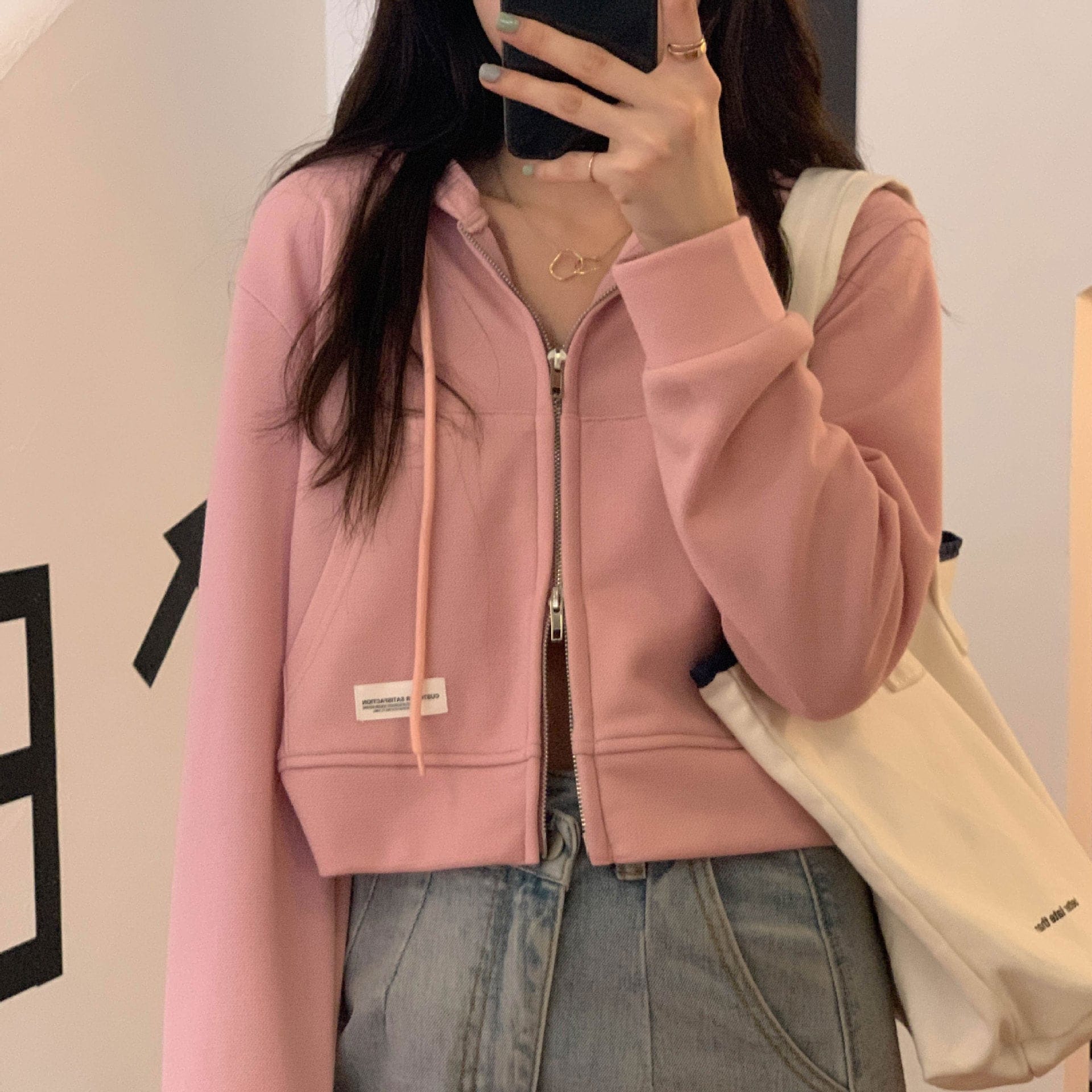 25 パーカー 長袖 短い ジッパー レディーストップス スウェット 男女兼用 韓国ファッション