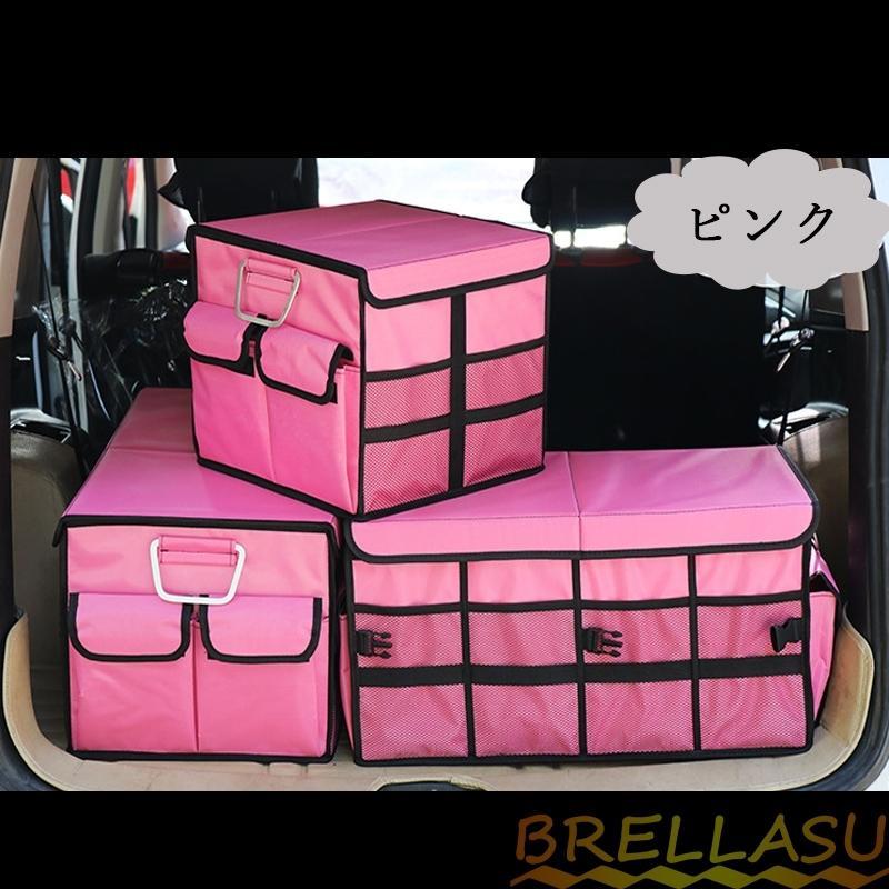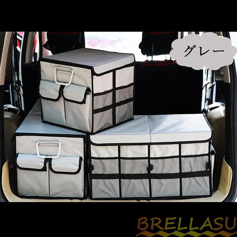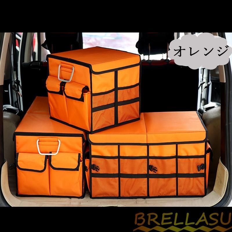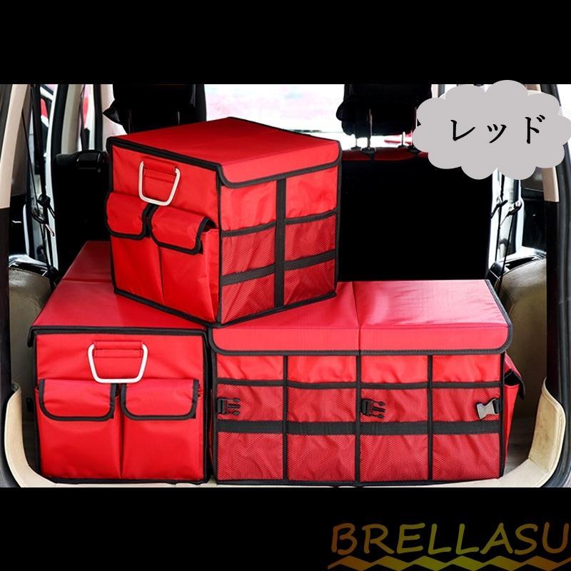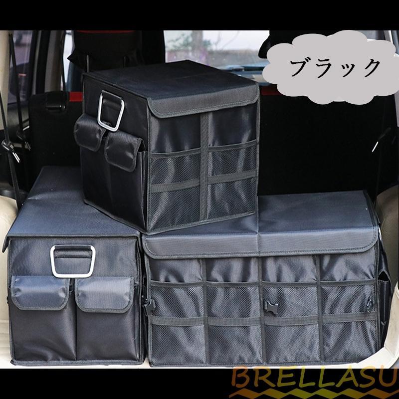 トランク 収納ボックス 車用 家庭用 折りたたみ式 持ち手 フタ付き 収納ポケット 大容量 荷台整理 ネットポケット ラゲッジ 車中泊 防災用具 洗車道具収納