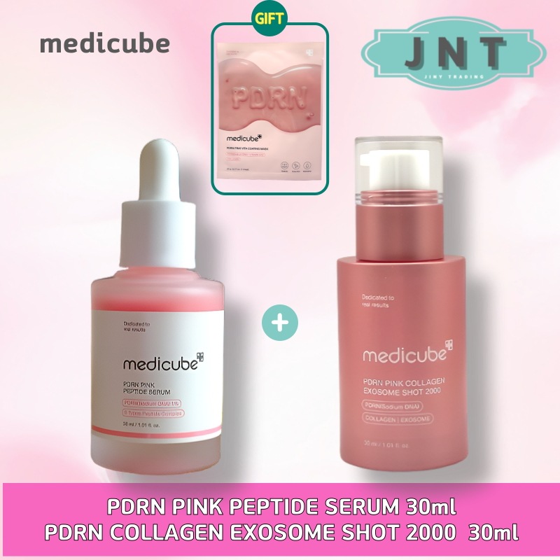 メディキューブ[1+1] PDRN ピンクペプチドセラム 30ml + PDRN ピンクコラーゲン エキゾウムショット アンプル 2000 30ml 2個セット サーモンアンプルコラーゲン韓国美容ギフト 韓国化粧品