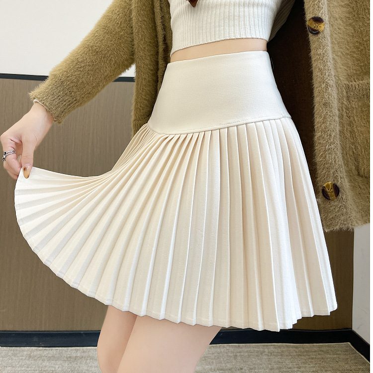 【急速出荷】ツイード半身スカート秋冬新作プリーツスカートハイウエスト着痩せa字冬モデル厚手半身短いスカート