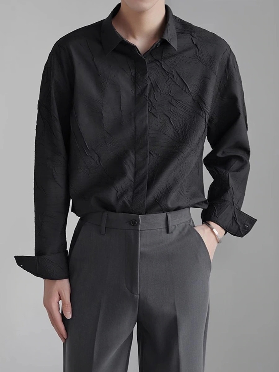 高級感あるフレンチ風ニッチシャツ メンズゆったりカジュアル ジャカードシャツ 若々しい韓国風アウター 長袖シャツ