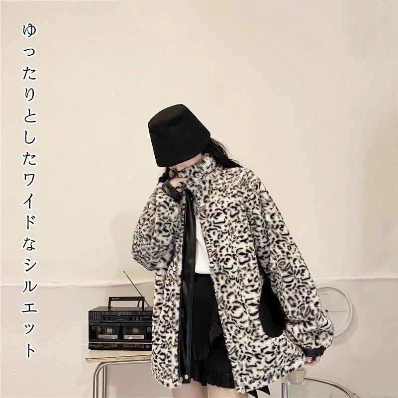 人気新作【両面で着られる】韓国ファッションヒョウ柄 リバーシブル 防風 ライダース PU レザージャケット 男女兼用 フリース コート 革ジャン ハイネックボア ムートン ダ豹柄 中綿